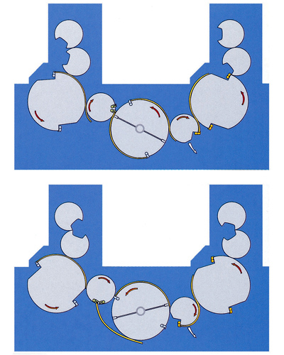 - пневматическую листопроводку листов картона в печатных секциях (синхронизированный раздув);