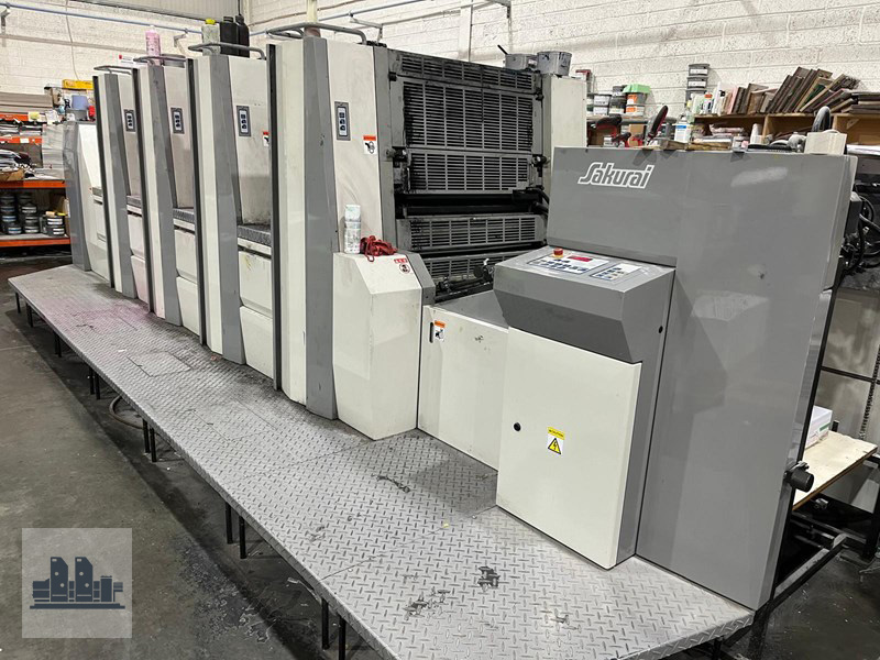 4 красочная полуформатная (B2) машина Oliver серий 75SD пр-ва Японии с дистанционным управлением краскоподачей Sakurai Сolor Сonsole II и высокостапельным приёмным устройством