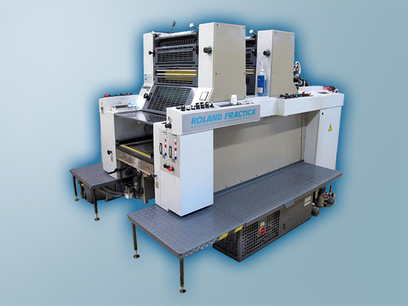 2-красочная модель Роланд Практика PRZ 00 («Z» в обозначении модели от немецкого zwei — два) без устройства переворачивания листов формата B3 (36×52 см). В стандартном варианте используется для печати с лица и отличается выгодным соотношением цены и показателей для печатных машин подобного класса.
